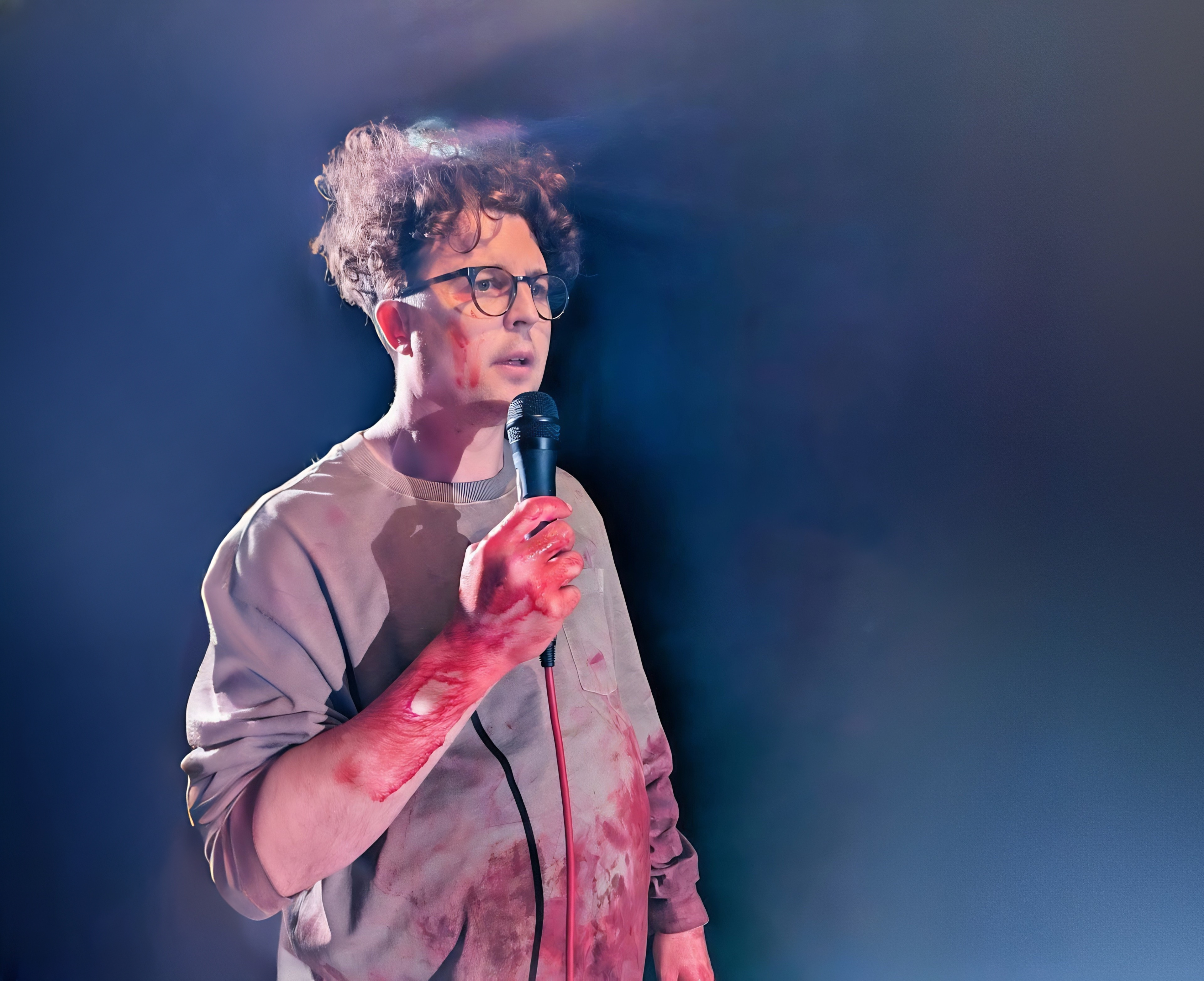 This is not a true story. Much like Baby Reindeer, its author dreams of a similar future with a 6-part Netflix adaptation and option for subsequent seasons. He says so several times throughout the show — perhaps, too many. But contrary to Richard Gadd’s uncomfortably gripping story of sexual abuse with a male figure as the victim, playwright and performer Olly Hawes is covering his back against any potential 180-million-dollar lawsuits from a deranged lady and her opportunist, money-thirsty American lawyer, which, for legal purposes, I’ll say that scenario is a completely fabricated idea from my hyperactive creative mind.